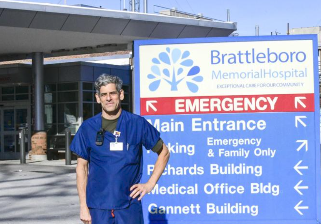 As he told this writer, “This is understandable given that only 10% of nurses in the US are male. Here in Brattleboro, for example, in the high-stakes environment of the emergency department, I may be the only man working with two women doctors and several women nurses.” (Roughly half the doctors at BMH are women.)